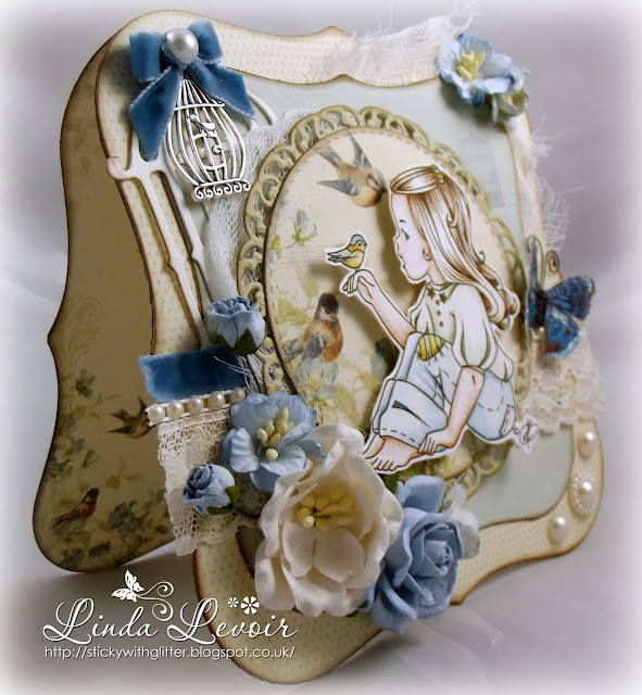 You'll have to forgive the background, as I said I had to take it in a place of work, and had to choose somewhere there was plenty of light! I used a combination of die cut gears, using La-La Land Crafts Steampunk Heart Cogs and Cheery Lyn gears which sadly aren't available any more. I also used some Tim Holtz metal gears and sprokets and some little screw heads from Prima.